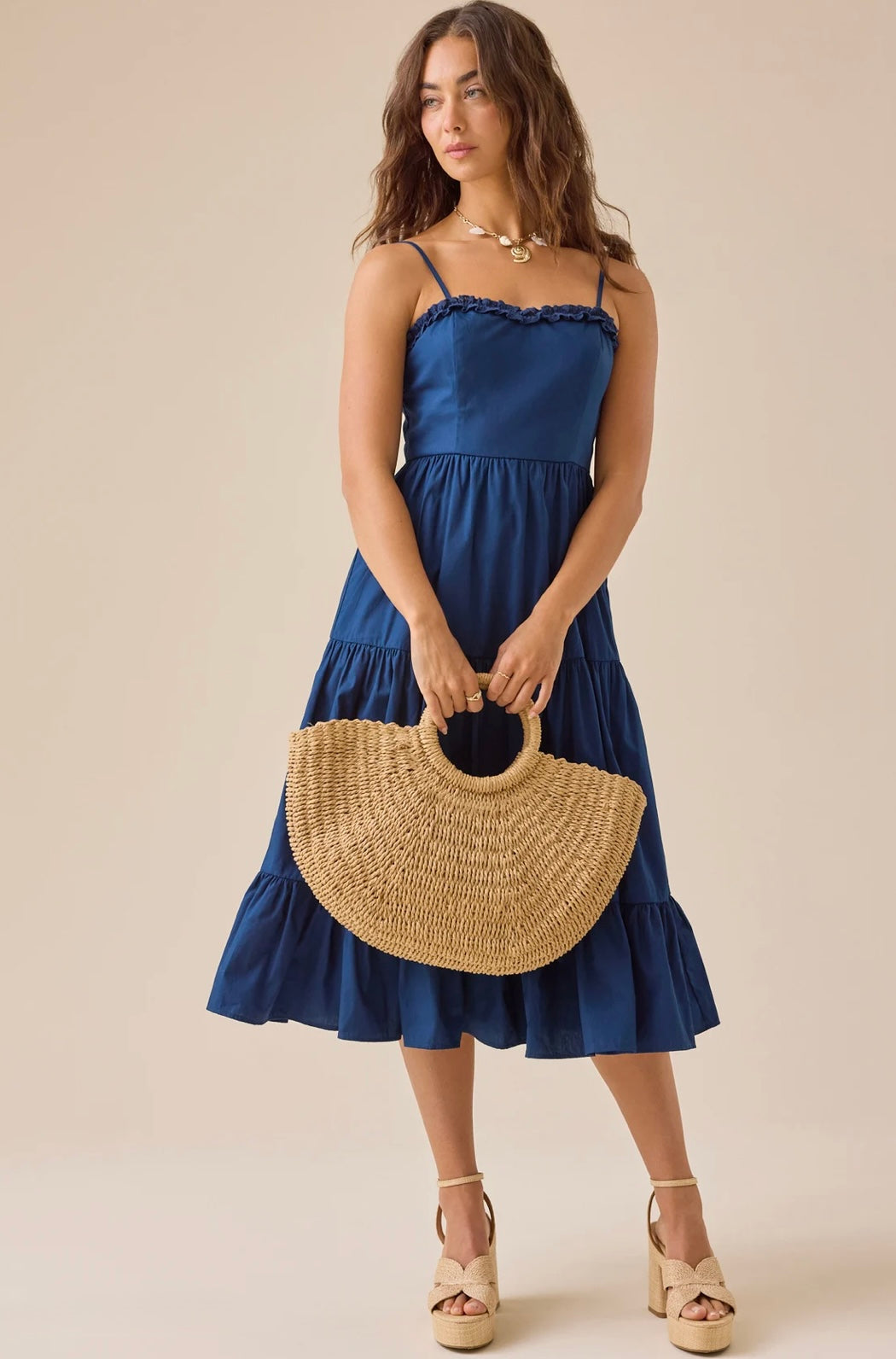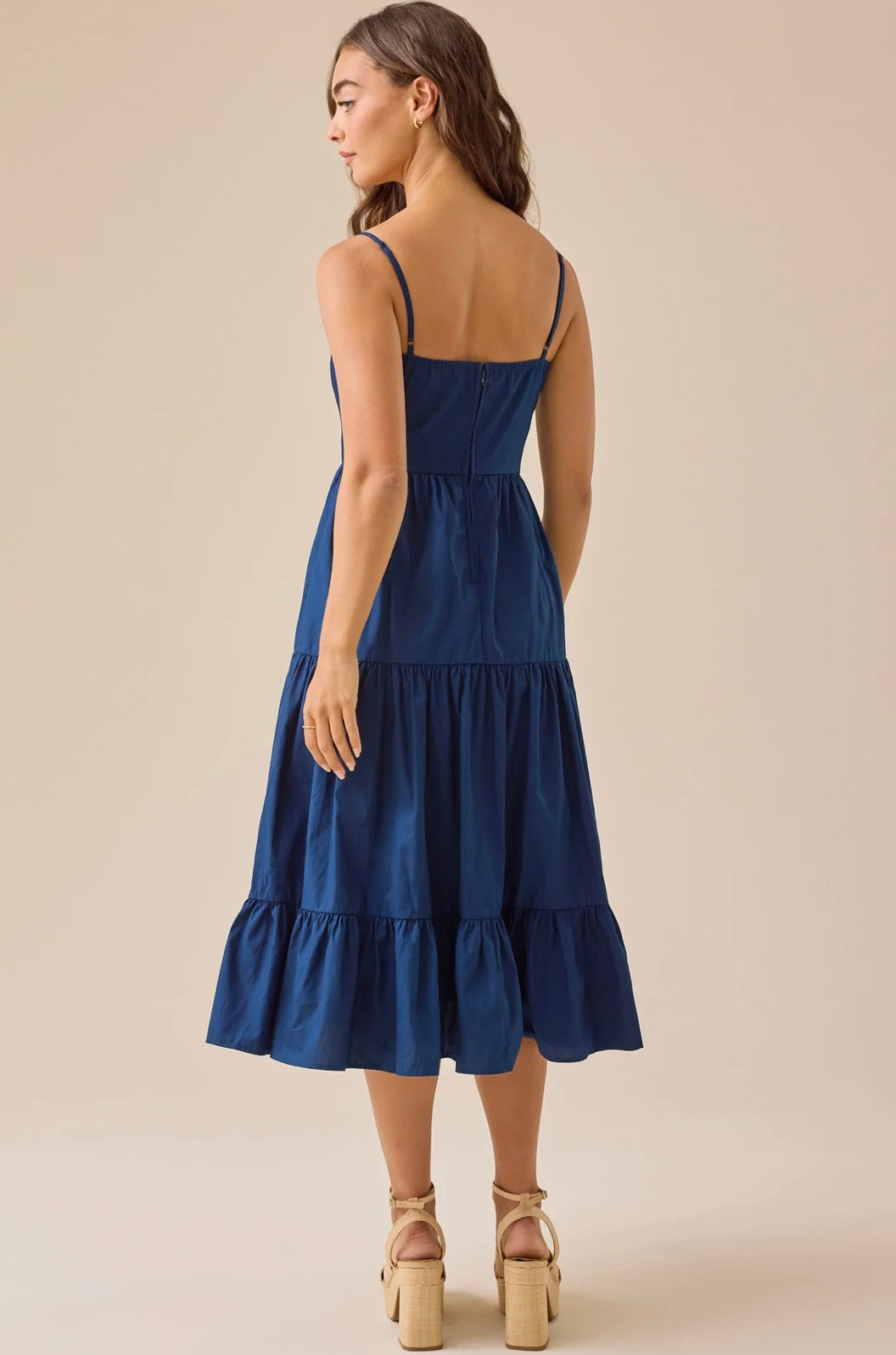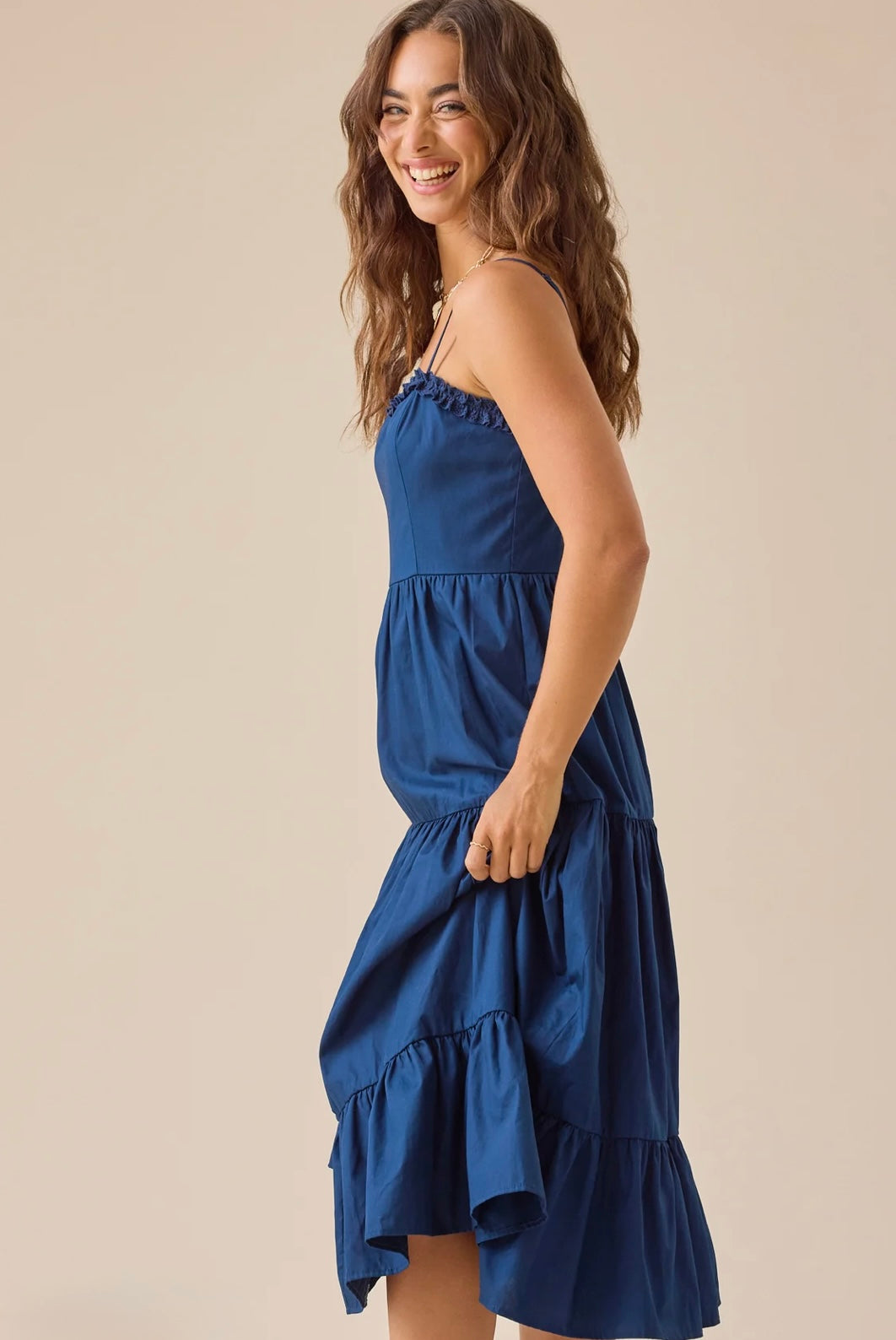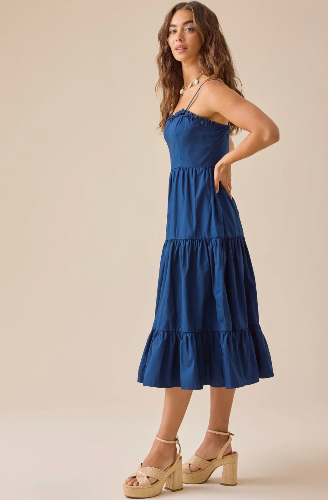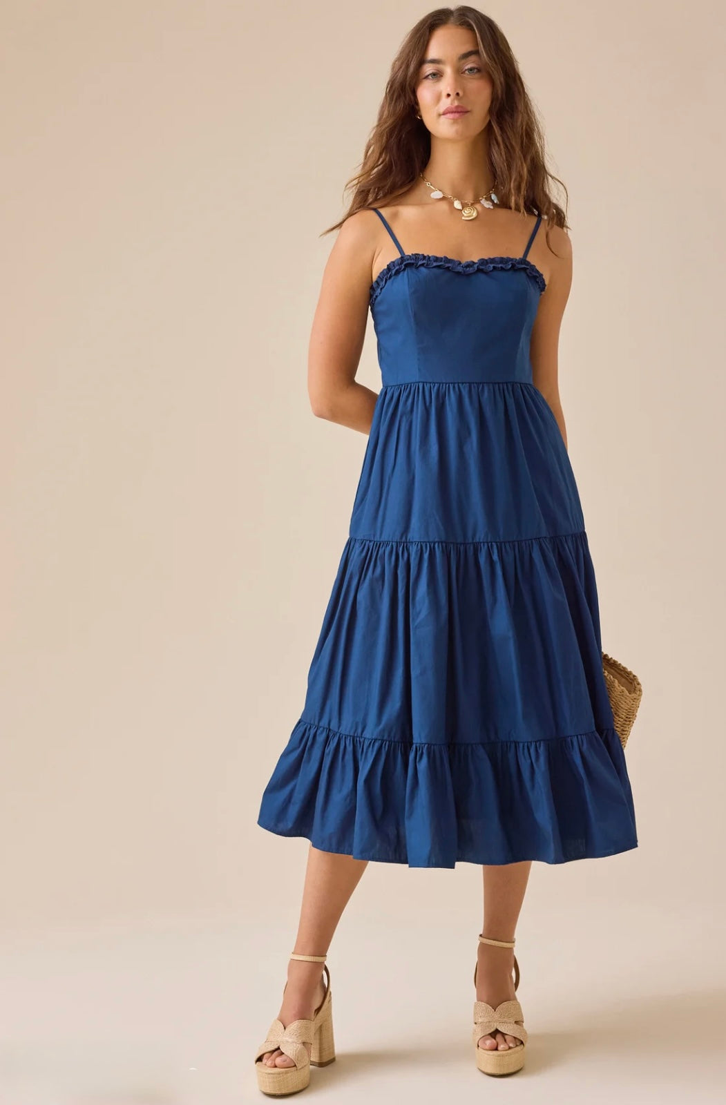 Vestido Midi escalonado, color "azul noche" perfecto para una elegancia relajada!!! la pieza clave para combinar comodidad y estilo sin esfuerzo. Diseñado en un hermoso azul profundo, de algodón, tan versátil que te acompañará desde un brunch casual, hasta una cena elegante al atardecer.